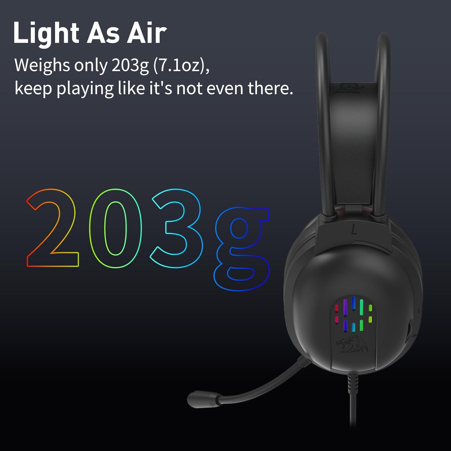 【Ultra Lightweight Design】 With a lightweight construction, the H262 wired gaming headset weighs only 203g (7.1oz), about 40% lighter than traditional gaming headsets, light as air like it's not even there.