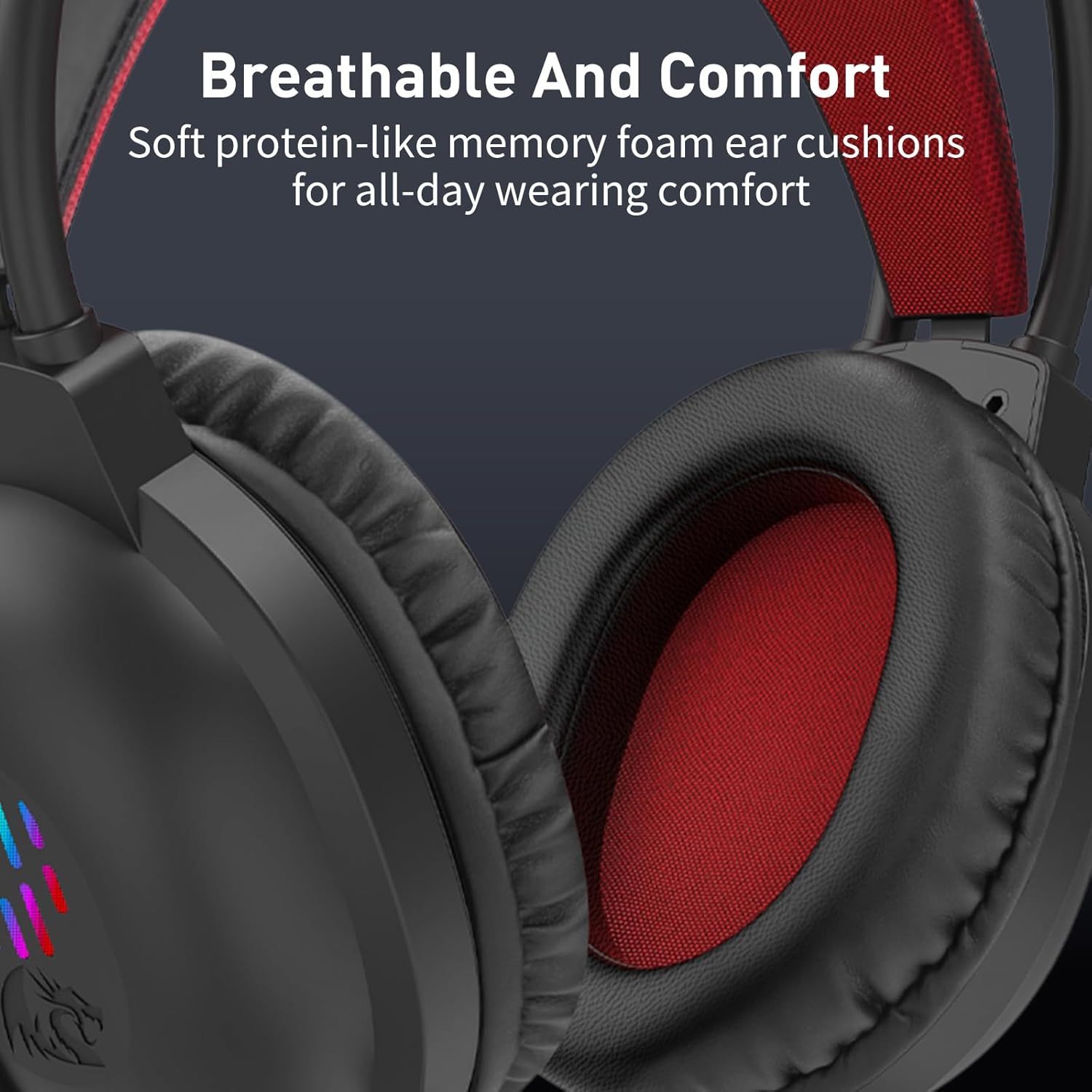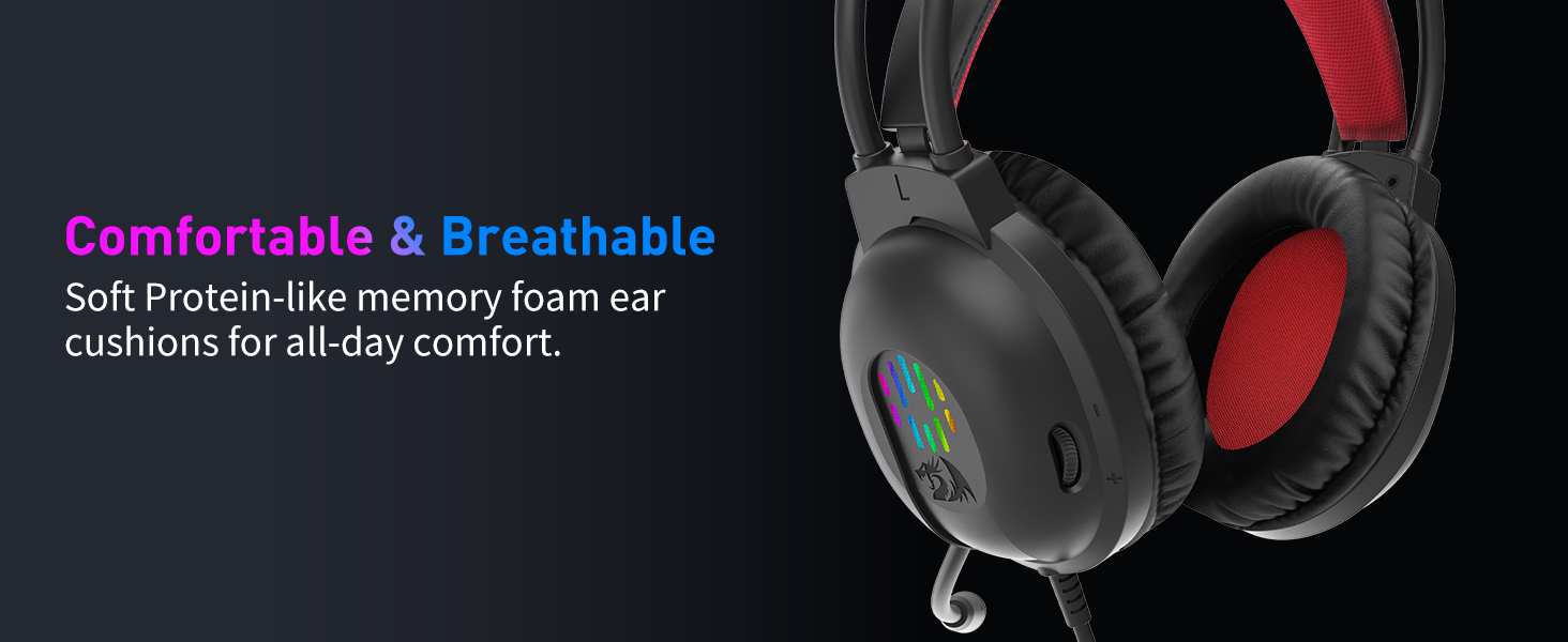 【All-Day Comfort】 Breathable protein-like earcups keep your ears comfort during long play sessions; The Adjustable and soft headband provides a comfortable gaming session, suitable for different head shapes and glasses-friendly.