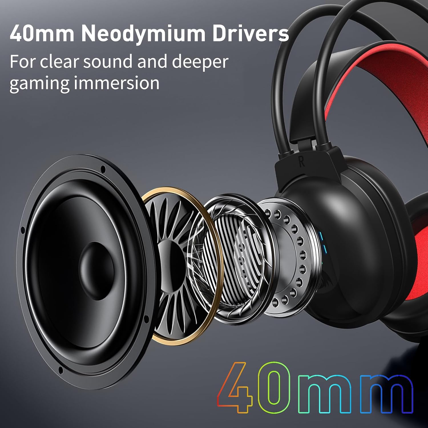 【Impressive Sound】 With 40mm neodymium drivers, the gaming headset delivers crisp, clear stereo sound, providing deeper gaming immersion and a more dynamic listening experience.