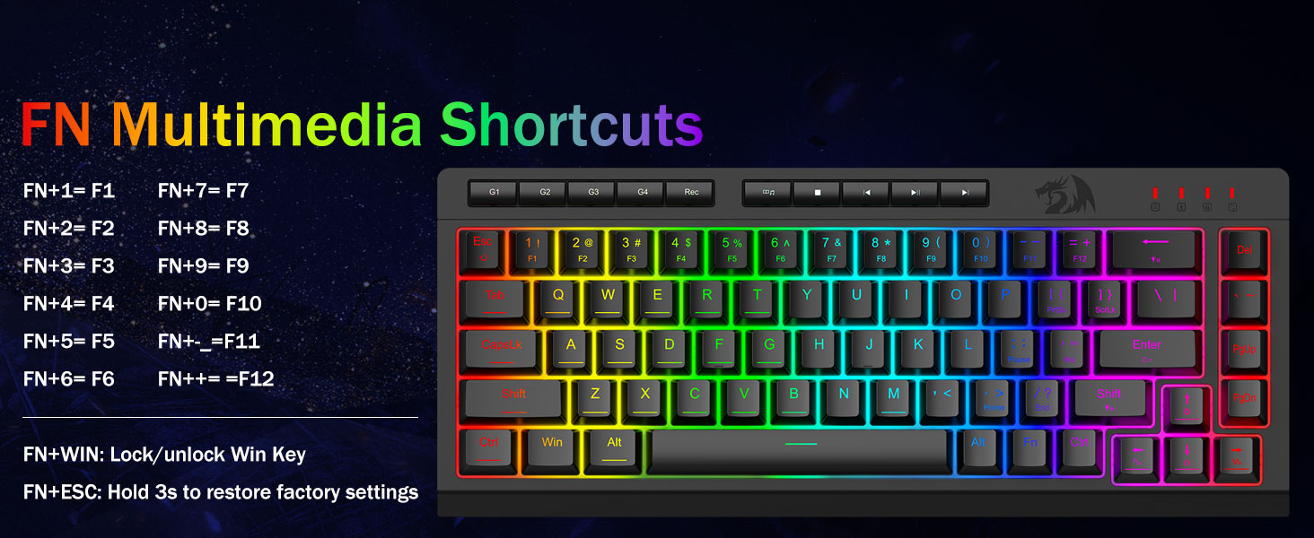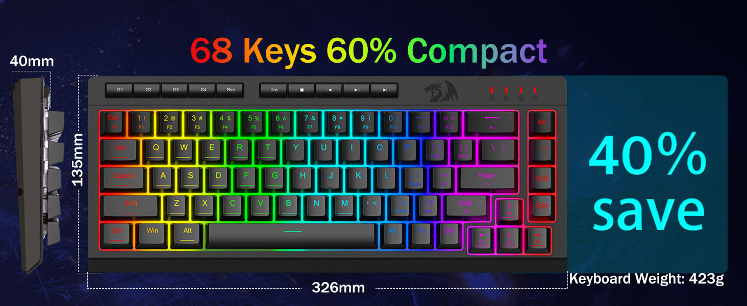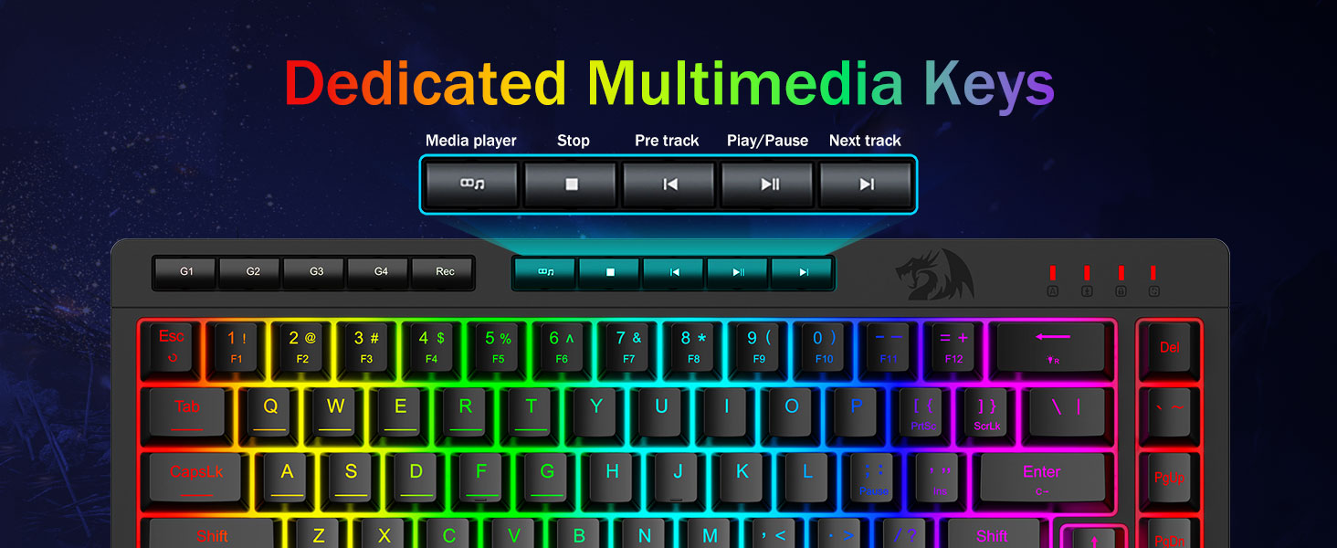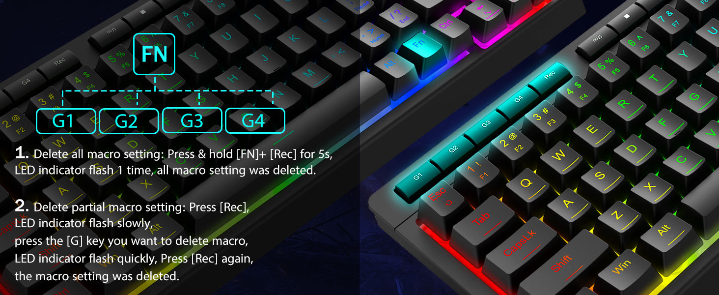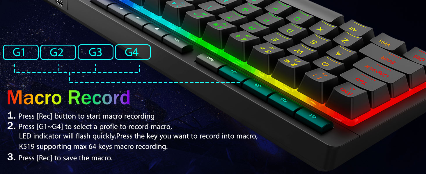 4 Onboard Macro Keys - 4 onboard macro keys (G1~G4) are programmable and work on the fly without any additional software. The keys are easy to edit and can perform a variety of different macros.