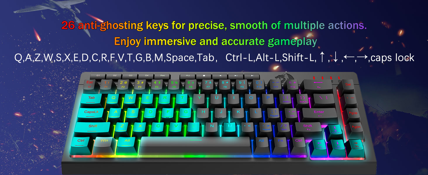 26 Anti-ghost Keys & Dedicated Media Controls - Featuring anti-ghosting keys (keys with an underscore) that allow for 26 keys to work simultaneously for fast and accurate game responses the way you intended. The dedicated media controls let you play, pause, and skip multimedia right from the keyboard so your gameplay is smooth and uninterrupted.