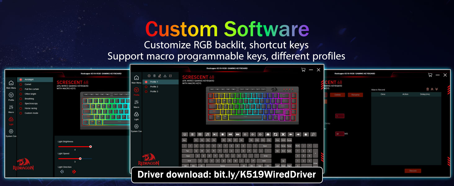 Software Support - Expand your options using the available software to design your own new modes and effects. Macros with different keybindings or shortcuts for more efficient work and gaming.
