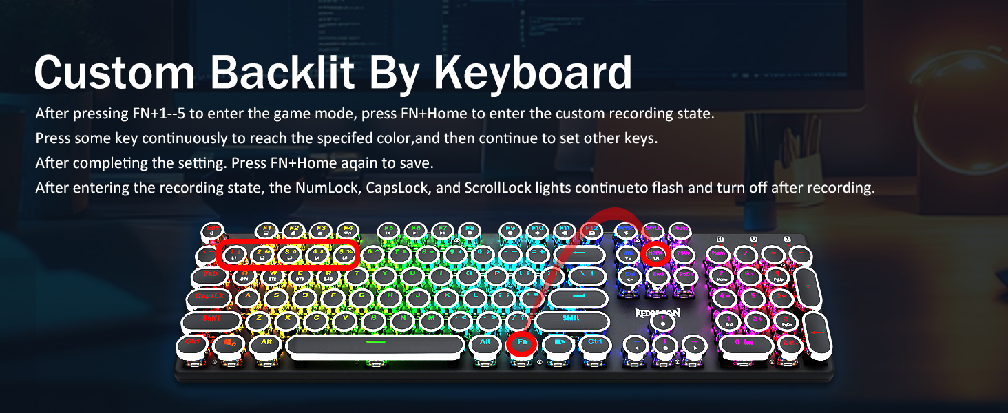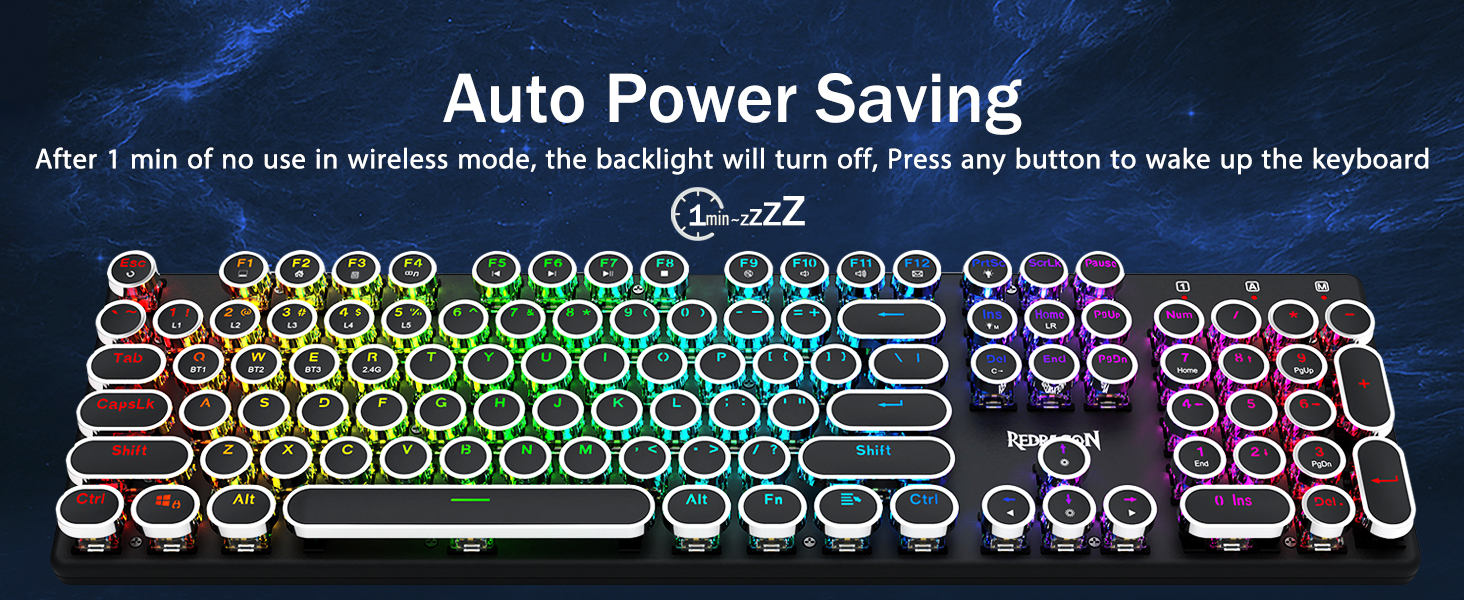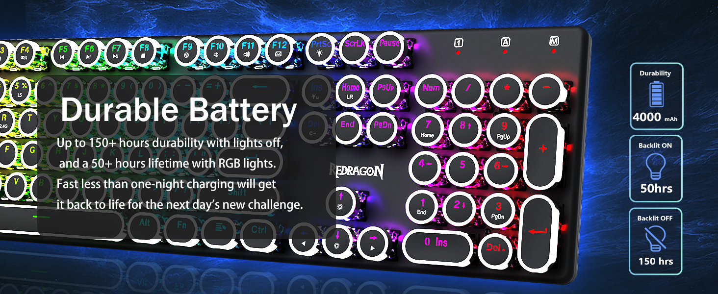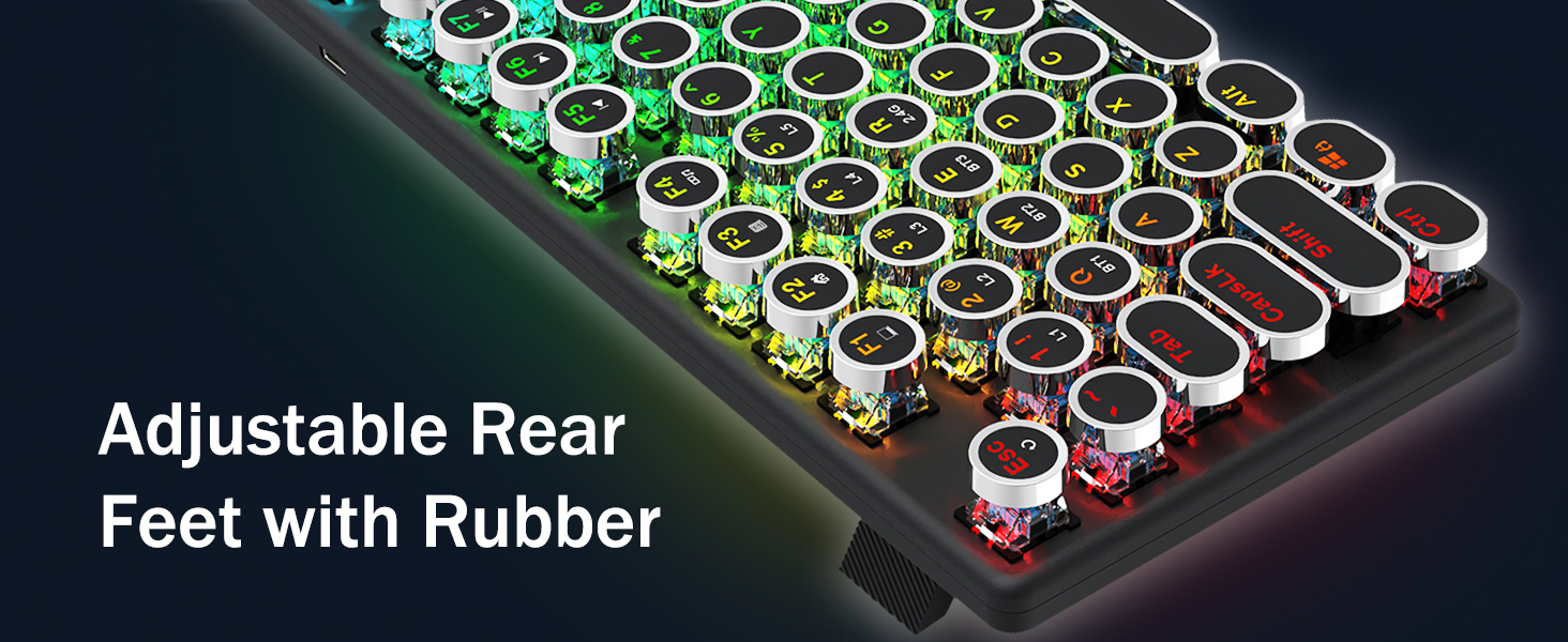 𝗥𝗲𝘁𝗿𝗼 𝗧𝘆𝗽𝗲𝘄𝗿𝗶𝘁𝗲𝗿 𝗦𝘁𝘆𝗹𝗲 𝘄𝗶𝘁𝗵 𝗠𝗲𝗰𝗵𝗮𝗻𝗶𝗰𝗮𝗹 𝗞𝗲𝘆𝘀 - Redragon Mechanical blue switches offer medium resistance, audible click clacky sound & tactile feedback, provides responsive and precise gaming environment and performance. Vintage steampunk keyboard round keycaps looks like a classical typewriter, brings you comfortable typing feeling & stable clicking touch.