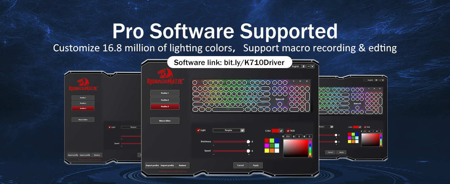 𝗣𝗿𝗼 𝗦𝗼𝗳𝘁𝘄𝗮𝗿𝗲 𝗦𝘂𝗽𝗽𝗼𝗿𝘁𝗲𝗱 - Expand your options using the available software to design your own new modes and effects. Macros with different keybindings or shortcuts for more efficient work and gaming.