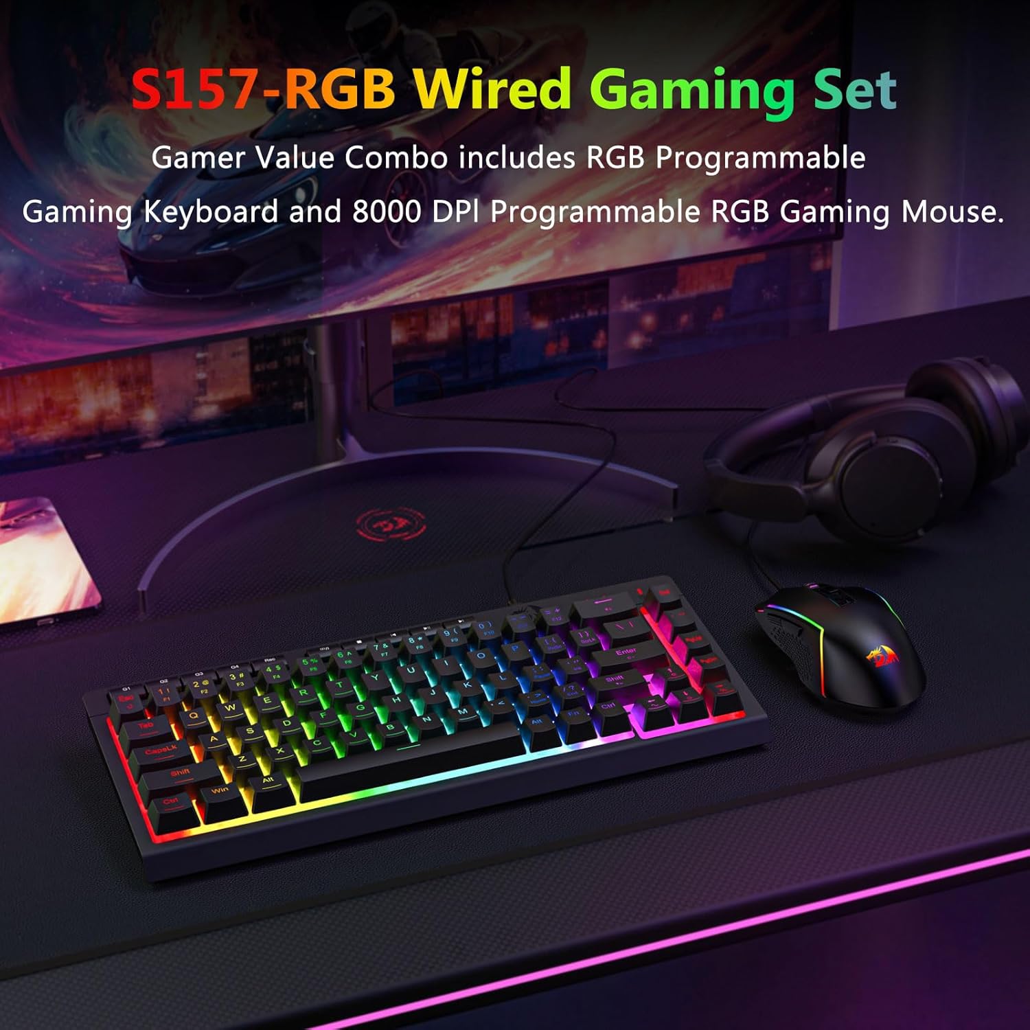 Black S157 RGB Backlit Wired Gaming Keyboard and Mouse Combo