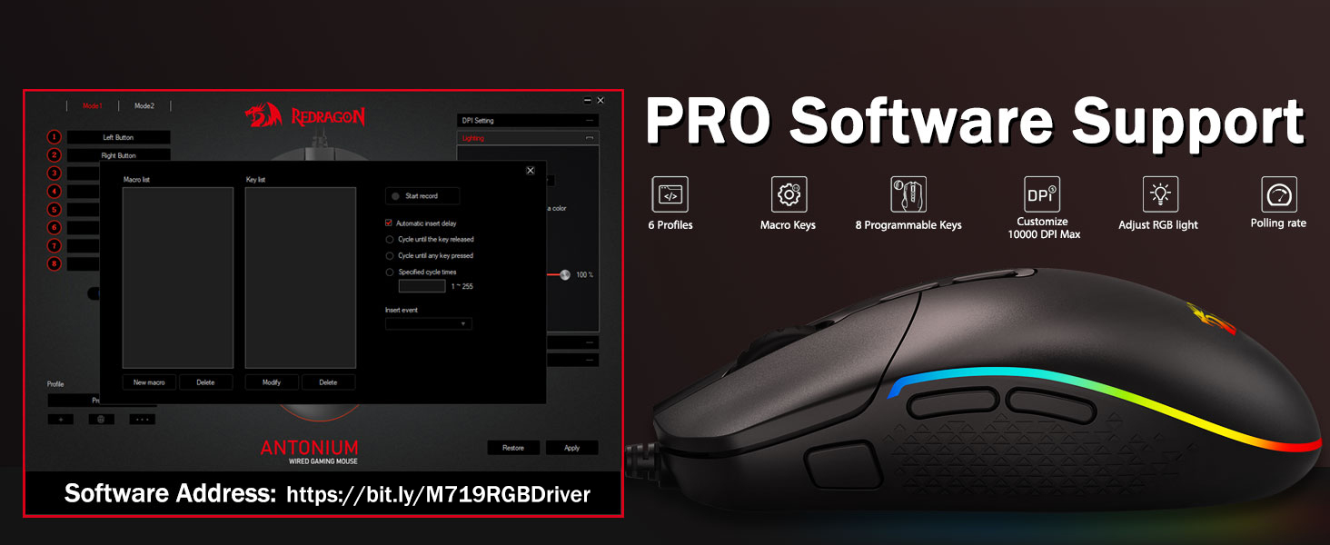 Software Support - Expand your options using the available software to design your own new modes and effects. Macros with different keybindings or shortcuts for more efficient work and gaming.