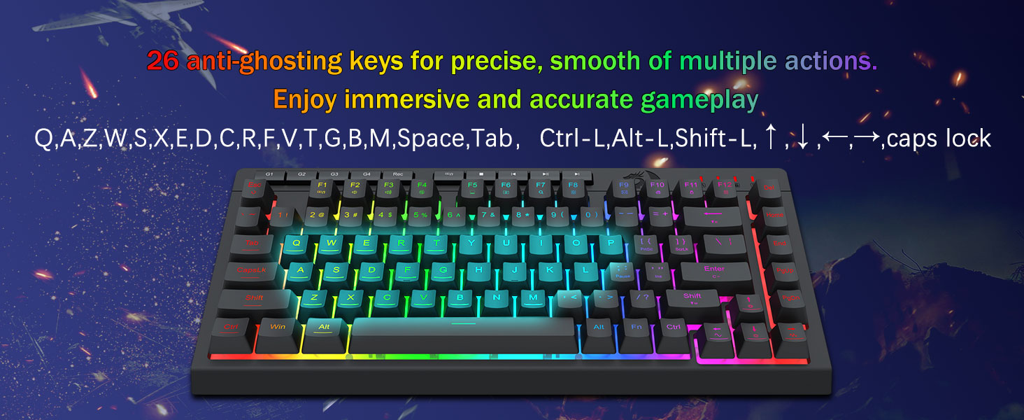 26 Anti-ghost Keys & Dedicated Media Controls - Featuring anti-ghosting keys (keys with an underscore) that allow for 26 keys to work simultaneously for fast and accurate game responses the way you intended. The dedicated media controls let you play, pause, and skip multimedia right from the keyboard so your gameplay is smooth and uninterrupted.