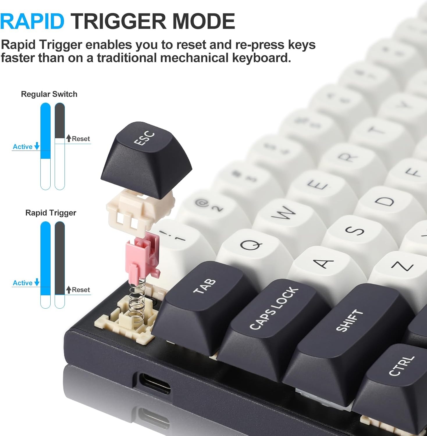 Top Quality - Ergonomic design, Made of solid Metal Panel and ABS, 100 million keystroke Magnetic switches, 1.6m/62in detachable USB-A to USB-C cable, Pro software, all keys no conflict