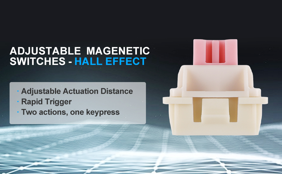 Adjustable Magnetic-Mechanical Switches: The entire keyboard is equipped with fully adjustable Redragon switches, enabling you to set every key's actuation point from a light 0.1mm to a strong 4mm in 0.1mm steps, putting you in control for fast keypresses or ultra-accurate typing.