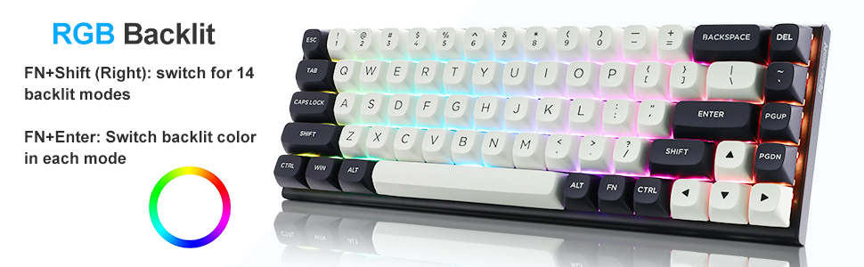 Vibrant RGB: Up to 20 presets backlighting modes are free to choose by the keyboard itself. Brightness and backlight flowing speed is also adjustable on keyboard. Select your own preferred modes for any playing.