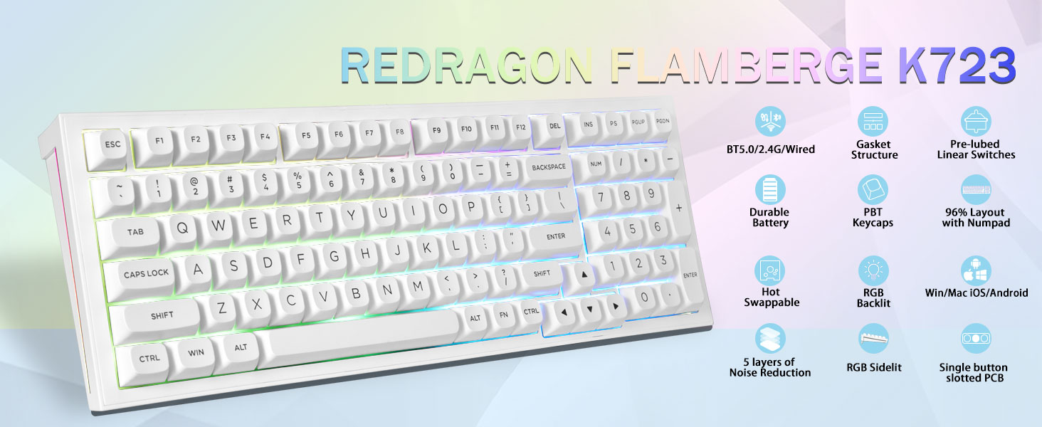 Chuangquan, a leading Chinese manufacturer, proudly presents the Redragon White Creamy K723 Wireless Mechanical Gaming Keyboard—a masterpiece designed for gamers who refuse to compromise! With blazing-fast multi-device connectivity, hot-swappable customization, and a gasket structure for buttery-smooth keystrokes, this keyboard delivers unrivaled performance. Pre-lubed switches and vibrant backlighting ensure every press is precise and immersive. As a trusted factory, Chuangquan guarantees competitive wholesale prices and OEM/ODM support for global suppliers seeking top-tier gaming gear. Elevate your gameplay—source directly from Chuangquan today!