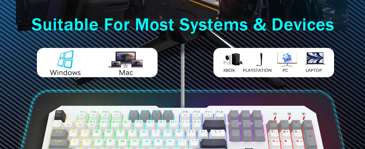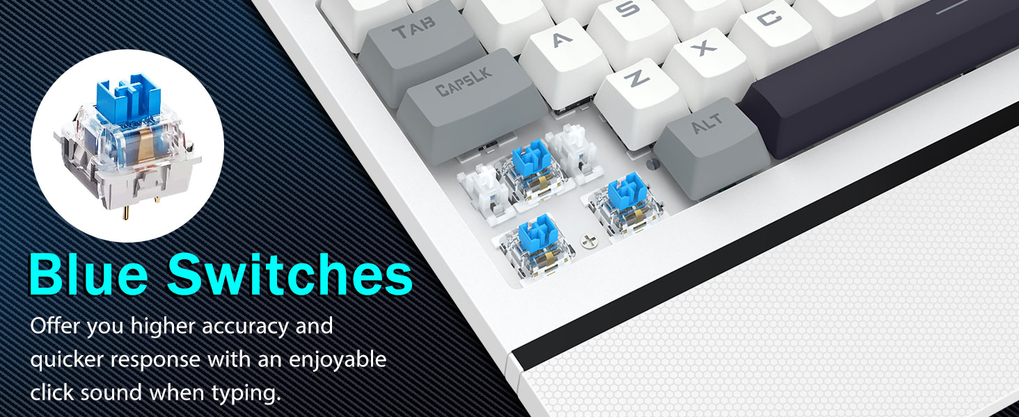 【Responsive Blue Switches for Precision Typing】 Our PC keyboard features clicky blue switches that provide lightning - fast response times and remarkable accuracy. Each keystroke produces a satisfying click sound, enhancing your typing experience. With deeper key travel, stronger feedback, and wider key spacing, typing is not only more accurate but also far more comfortable. If you're a fan of that tactile, "clicky" feel, our keyboard is the perfect choice for you.