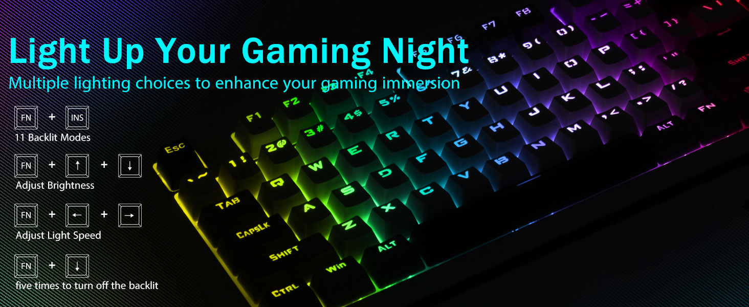 【Rainbow Backlit Keyboard for an Immersive Experience】 Illuminate your desktop with 11 dynamic backlight modes, 5 adjustable levels of speed and brightness. This keyboard is a game-changer for your gaming setup, enhancing your mood and immersion, especially in low-light environments. The ultra-durable double-injection ABS keycaps ensure a crystal - clear, uniform backlight, improving your typing accuracy even in the dark.