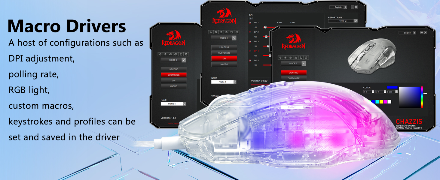 Chuangquan, a specialist in gaming peripherals, invites you to explore the Redragon White M695CT Wired Gaming Mouse—a product that exemplifies our dedication to precision engineering, aesthetic design, and providing value to our wholesale clients.The White M695CT 24,000 DPI 8 RGB LED Backlit Mode Wired Gaming Mouse is engineered for elite gamers, delivering precision with 5 adjustable DPI levels (up to 24,000 DPI) and 4 polling rates for ultra-responsive tracking. Its standout transparent shell combines aesthetics with functionality, while the comfort grip reduces fatigue during extended sessions. The mouse features 8 vibrant RGB backlit modes, customizable to match any setup, and every button is reassignable for tailored macros .