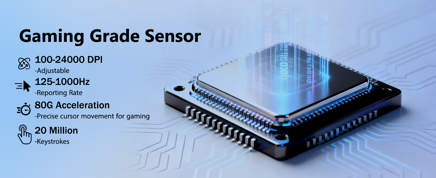 【5 Adjustable DPI Levels and 4 Polling Rate】 M695CT mouse is designed with 5 DPI levels available: DPI 400/800/1600/2400/3200, Easy to switch between different game needs. DPI can be adjusted freely by ±100 from 100 to 24000 via software to meet all your needs. 4 polling rate is adjustable: 125Hz/250Hz/500Hz/1000Hz, high polling rate ensures a smooth and fast movement.